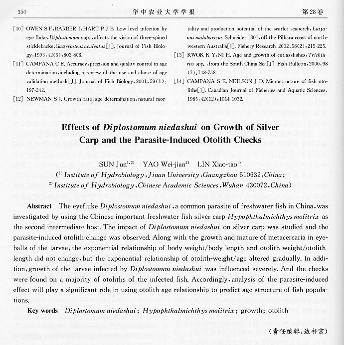 倪氏復(fù)口吸蟲的寄生對鰱及其耳石生長的影響5