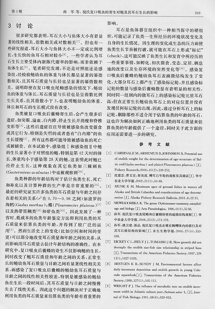 倪氏復口吸蟲的寄生對鰱及其耳石生長的影響4