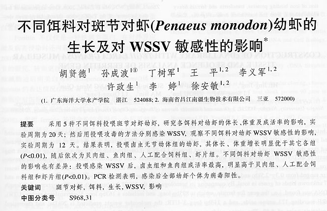不同餌料對(duì)斑節(jié)對(duì)蝦幼蝦的生長(zhǎng)及對(duì)WSSV敏感性的影響