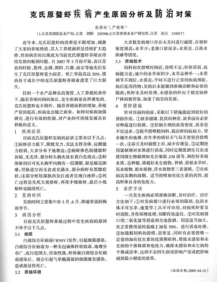 克氏原鰲蝦疾病產(chǎn)生原因分析及防治對策