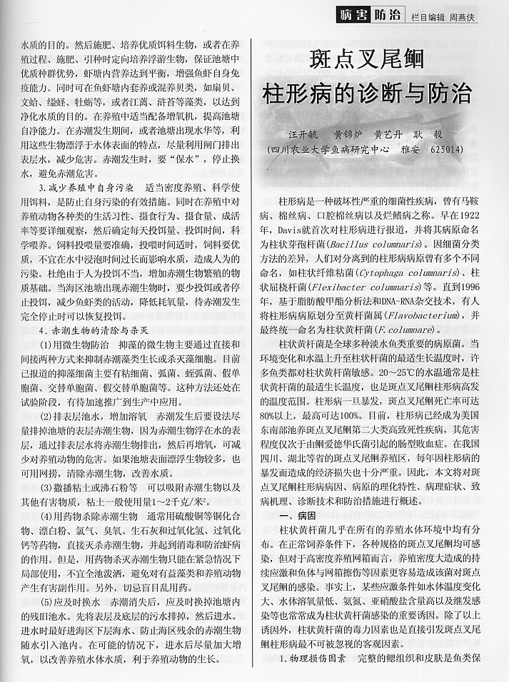 斑點(diǎn)叉尾鮰柱形病的診斷與防治1