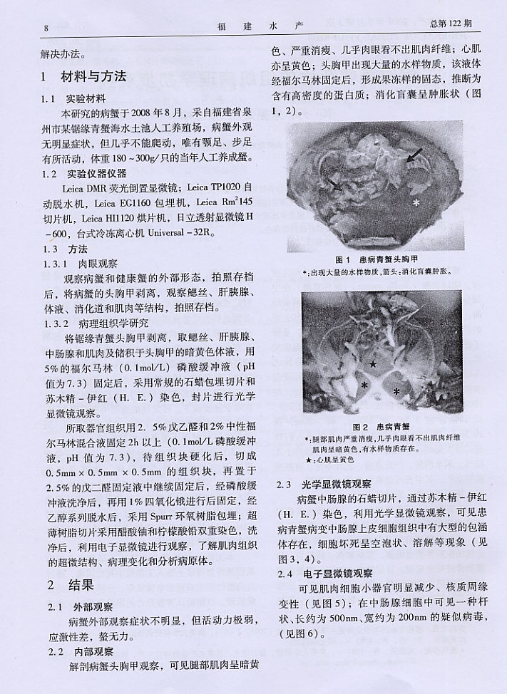 鋸緣青蟹死亡的組織病理學初步觀察2