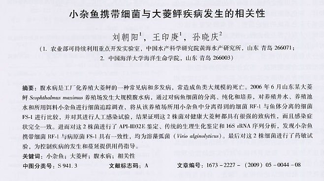 小雜魚(yú)攜帶細(xì)菌與大菱鲆疾病發(fā)生的相關(guān)性