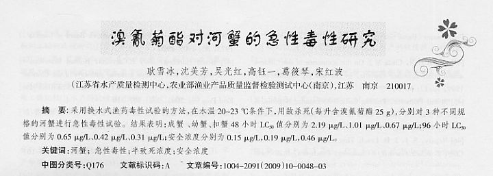 溴氰菊酯對(duì)河蟹的急性毒性研究