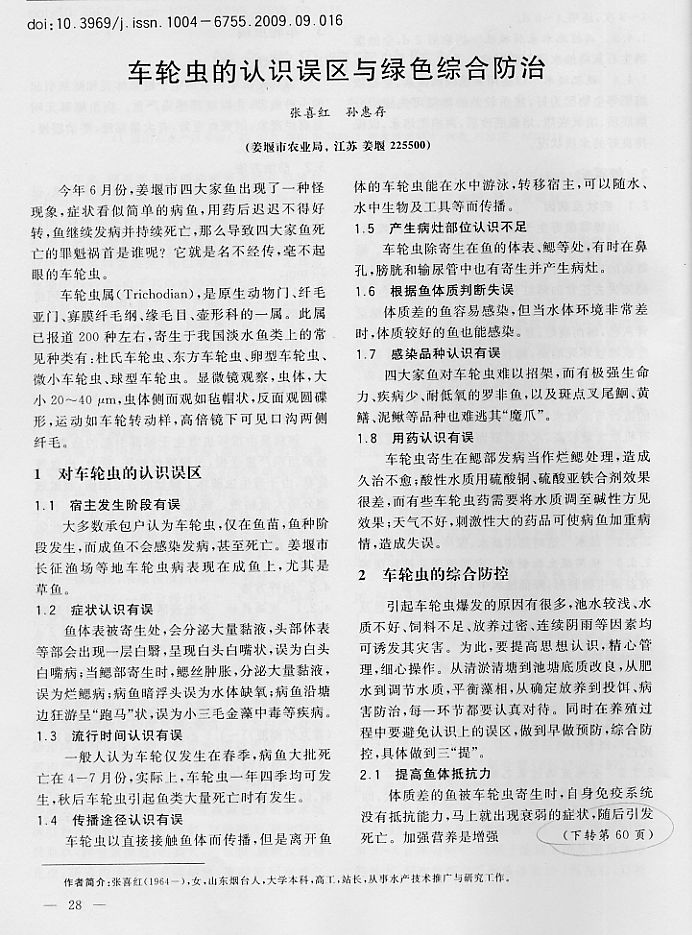 車輪蟲的認識誤區(qū)與綠色綜合防治1