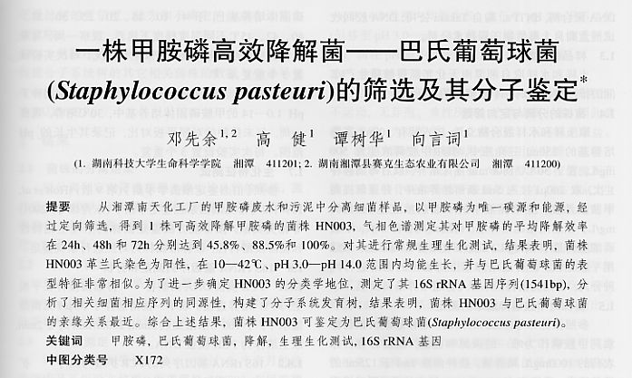 一株甲胺磷高效降解菌---巴氏葡萄球菌的篩選及其分子鑒定