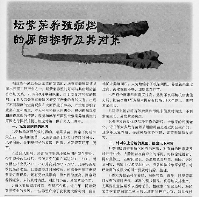 壇紫菜養(yǎng)殖病爛的原因探析及其對策1