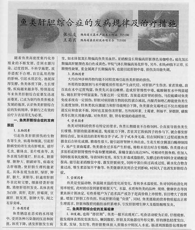 魚類肝膽綜合癥的發(fā)病規(guī)律及治療措施1