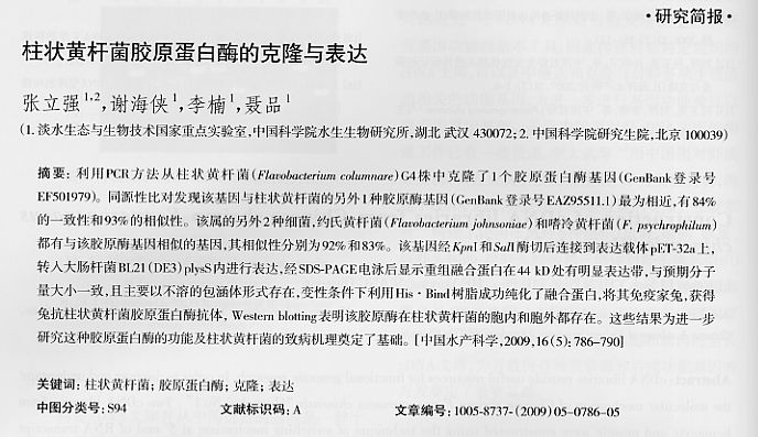 柱狀黃桿菌膠原蛋白酶的克隆與表達(dá)