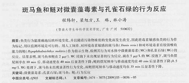 斑馬魚和鰱對(duì)微囊藻毒素與孔雀石綠的行為反應(yīng)