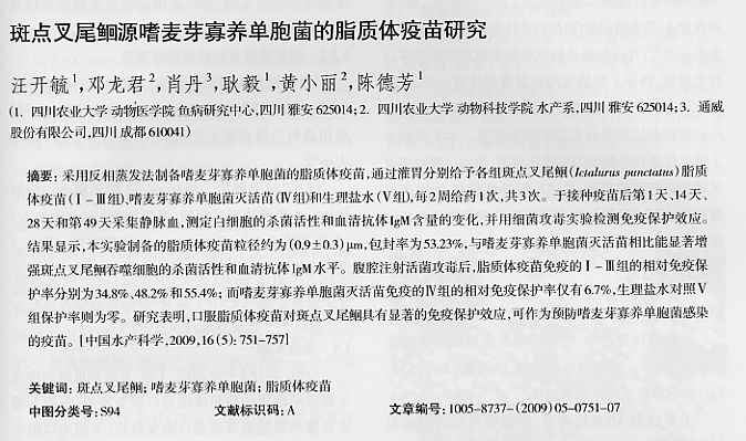 斑點叉尾鮰源嗜麥芽寡養(yǎng)單胞菌的脂質體疫苗研究