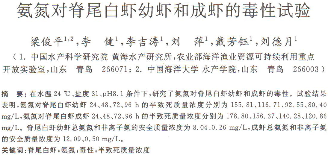 氨氮對(duì)脊尾白蝦幼蝦和成蝦的毒性試驗(yàn)