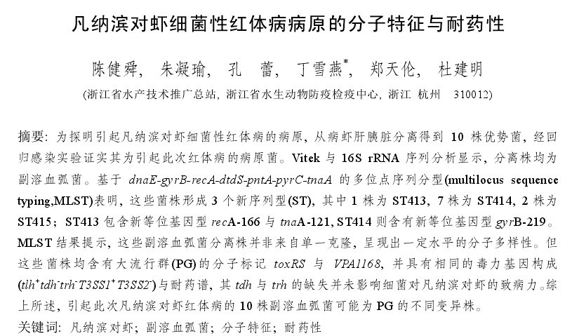 凡納濱對蝦細(xì)菌性紅體病病原的分子特征與耐藥性