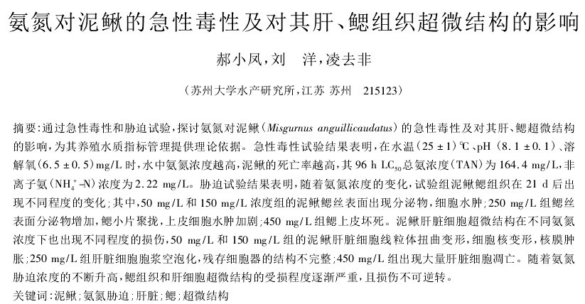 氨氮對(duì)泥鰍的急性毒性及對(duì)其肝、鰓組織超微結(jié)構(gòu)的影響