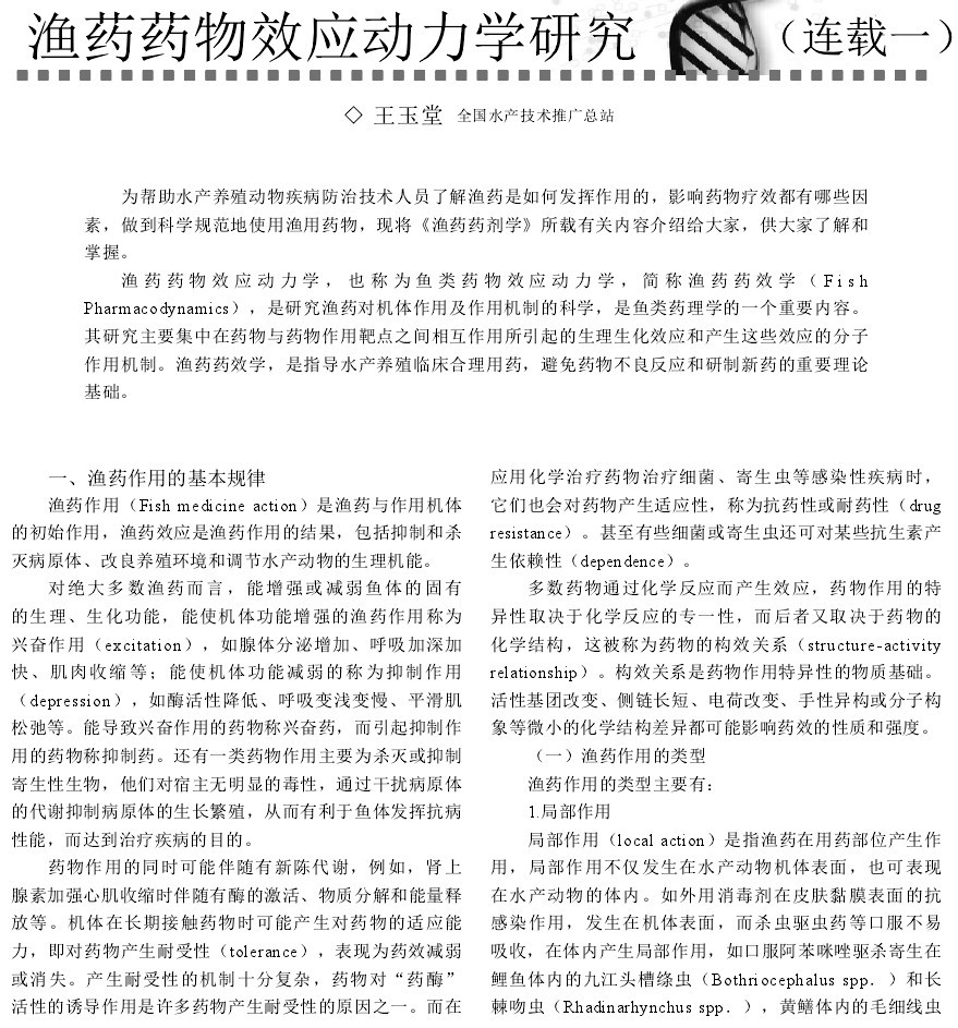 漁藥藥物效應(yīng)動(dòng)力學(xué)研究連載一
