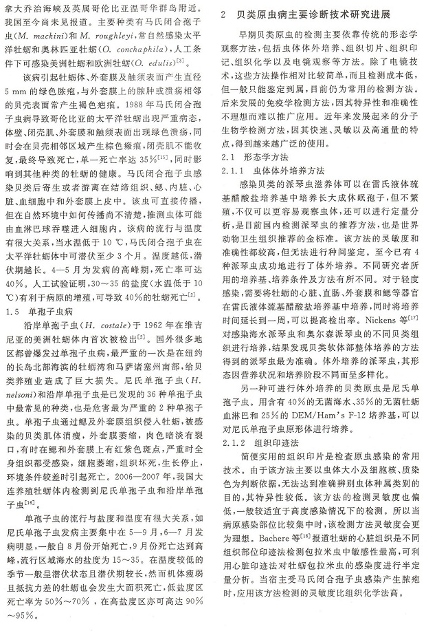 重要經(jīng)濟(jì)貝類(lèi)原蟲(chóng)病及其診斷技術(shù)研究進(jìn)展3