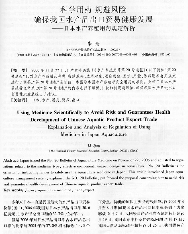 科學用藥 規(guī)避風險 確保我國水產(chǎn)品出口貿(mào)易健康發(fā)展——日本水產(chǎn)1