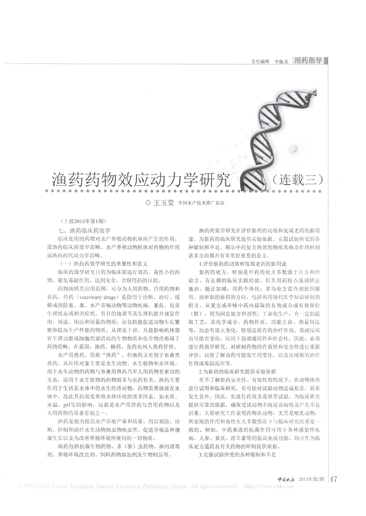 漁藥藥物效應(yīng)動力學(xué)研究連載三