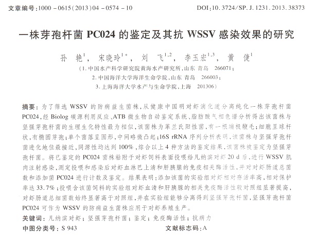 一株芽孢桿菌PC024的鑒定及其抗WSSV感染效果的研究