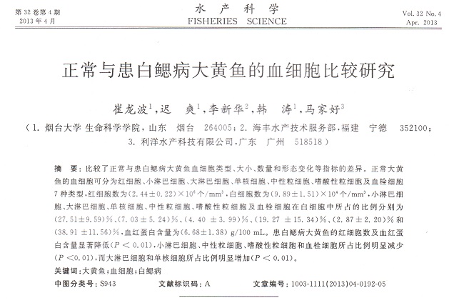 正常與患白鰓病大黃魚(yú)的血細(xì)胞比較研究