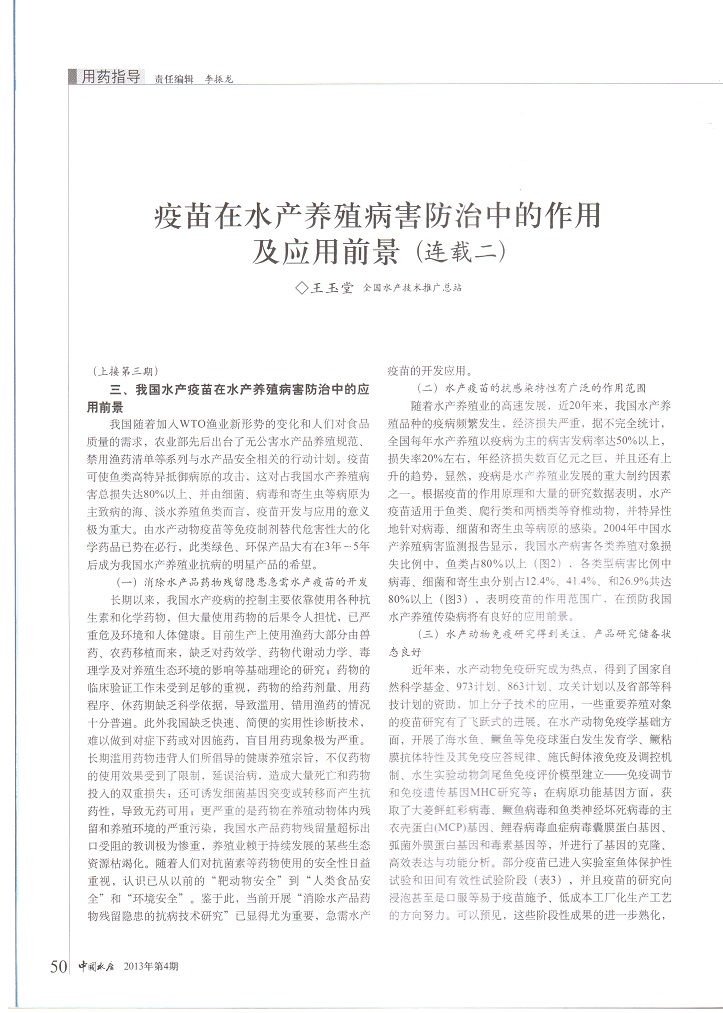 疫苗在水產(chǎn)養(yǎng)殖病害防治中的作用及應(yīng)用前景(連載二)