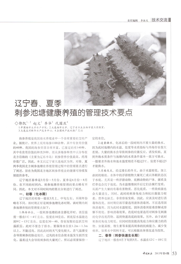 遼寧春、夏季刺參池塘健康養(yǎng)殖的管理技術要點