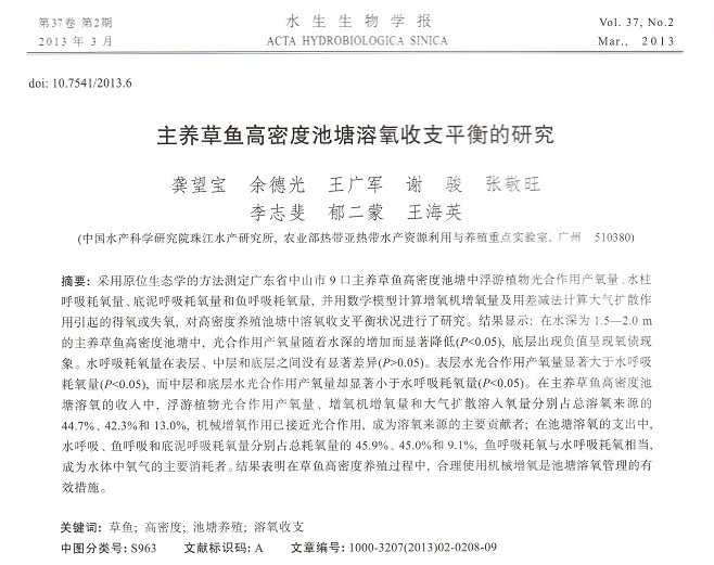 主養(yǎng)草魚高密度池塘溶氧收支平衡的研究
