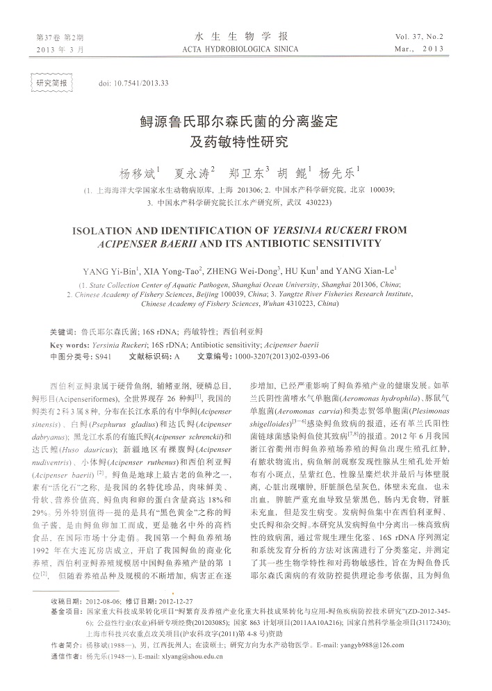 鱘源魯氏耶爾森氏菌的分離鑒定及藥敏特性研究