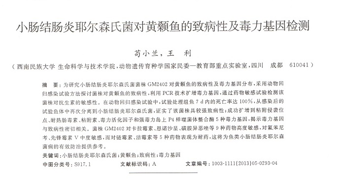 小腸結(jié)腸炎耶爾森氏菌對(duì)黃顙魚(yú)的致病性及毒力基因檢測(cè)