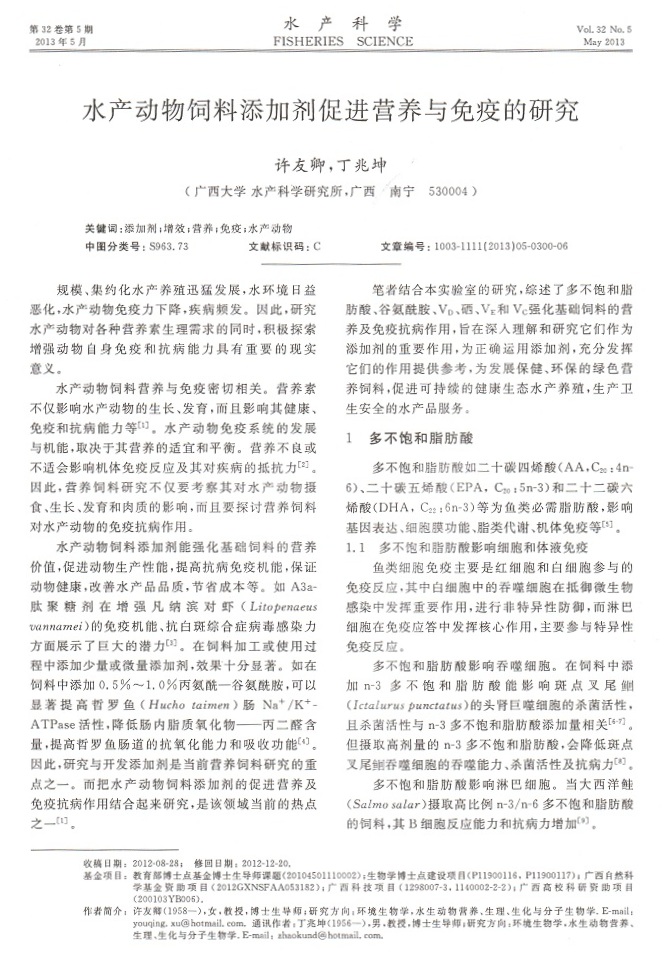 水產(chǎn)動(dòng)物飼料添加劑促進(jìn)營養(yǎng)與免疫的研究
