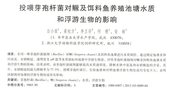 投喂芽孢桿菌對鱖及餌料魚養(yǎng)殖池塘水質(zhì)和浮游生物的影響