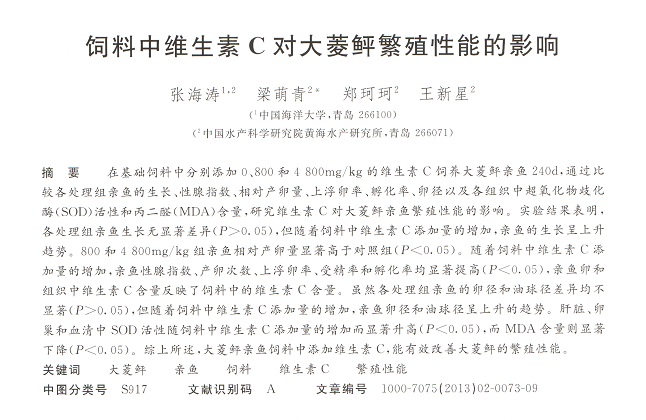 飼料中維生素C對(duì)大菱鲆繁殖性能的影響