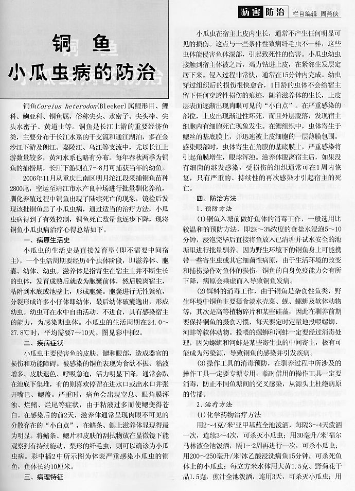 銅魚小瓜蟲病的防治
