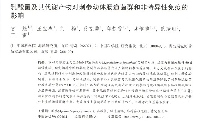 乳酸菌及其代謝產(chǎn)物對(duì)刺參幼體腸道菌群和非特異性免疫的影響