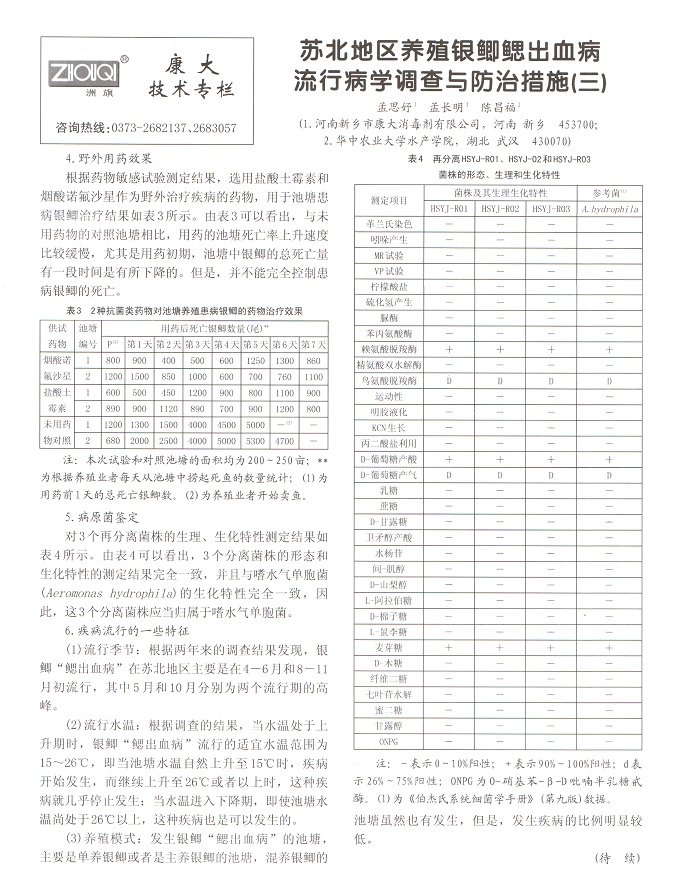 蘇北地區(qū)養(yǎng)殖銀鯽鰓出血病流行病學(xué)調(diào)查與防治措施(三)