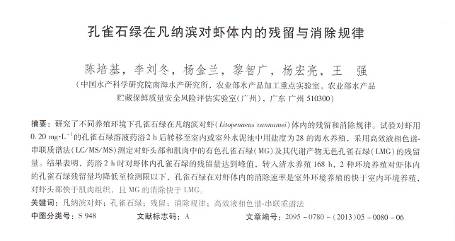 孔雀石綠在凡納濱對蝦體內的殘留與消除規(guī)律