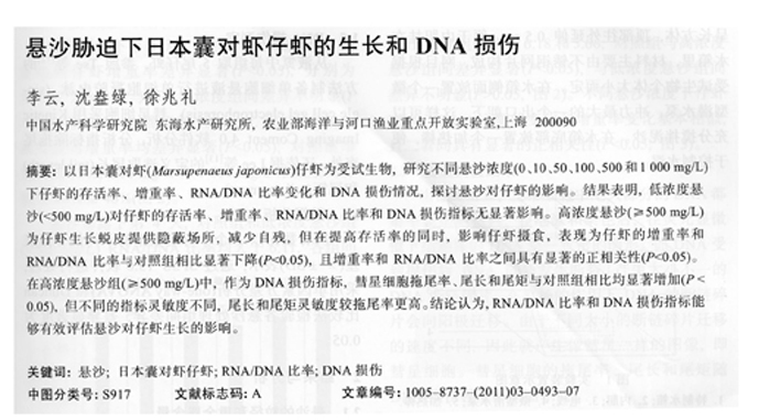 懸沙脅迫下日本囊對(duì)蝦仔蝦的生長(zhǎng)和DNA損傷