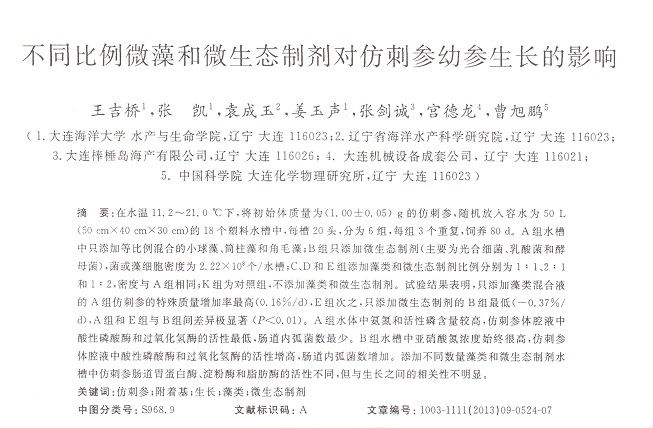 不同比例微藻和生態(tài)制劑對仿刺參幼參生長的影響