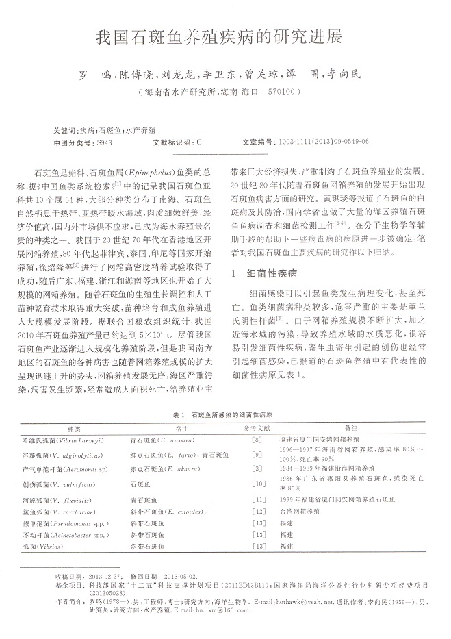 我國石斑魚養(yǎng)殖疾病的研究進展