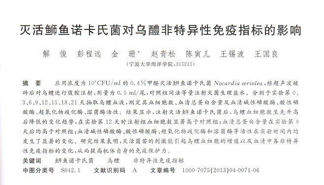 滅活鰤?mèng)~諾卡氏菌對(duì)烏鱧非特異性免疫指標(biāo)的影響