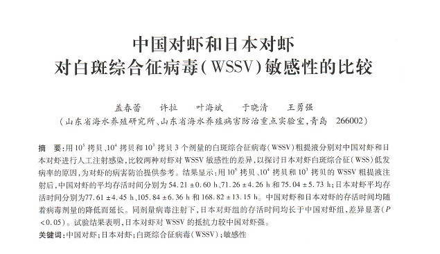 中國對蝦和日本對蝦對白斑綜合征病毒(WSSV)敏感性的比較