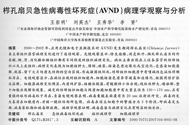 櫛孔扇貝急性病毒性壞死癥(AVND)病理學(xué)觀察與分析