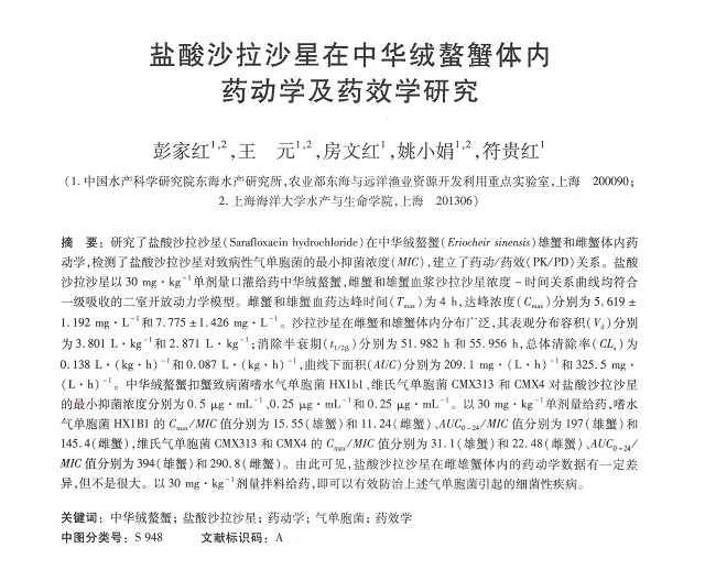 鹽酸沙拉沙星在中華絨鰲蟹體內(nèi)藥動(dòng)學(xué)及藥效學(xué)研究