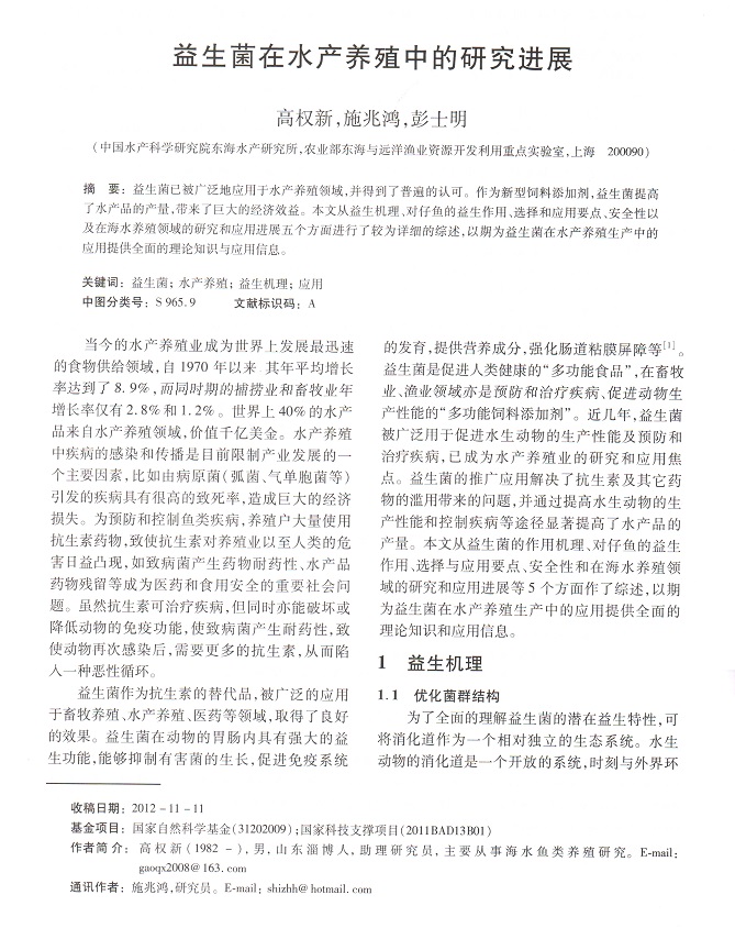 益生菌在水產(chǎn)養(yǎng)殖中的研究進(jìn)展