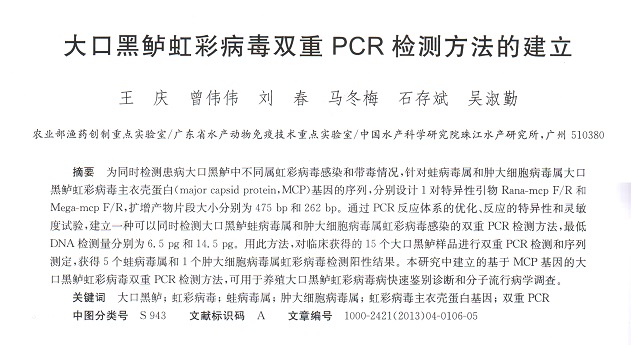 大口黑鱸虹彩病毒雙重PCR檢測方法的建立