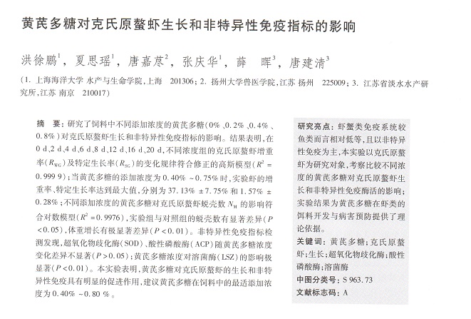 黃氏多糖對克氏原蟹蝦生長和非特異性免疫指標的影響