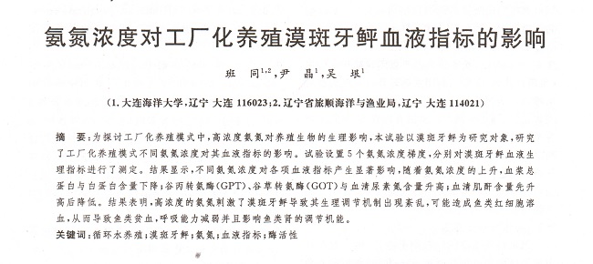 氨氮濃度對工廠化養(yǎng)殖漠斑牙鲆血液指標(biāo)的影響