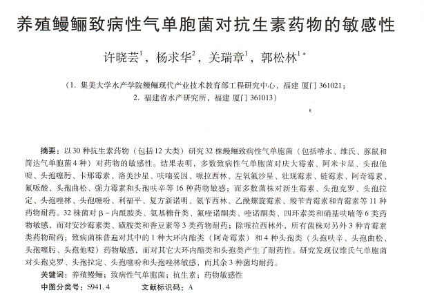 養(yǎng)殖鰻鱺致病性氣單胞菌對抗生素藥物的敏感性