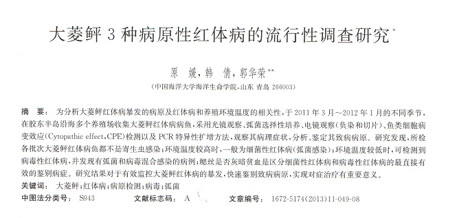 大菱鲆3種病原性紅體病的流行性調(diào)查研究