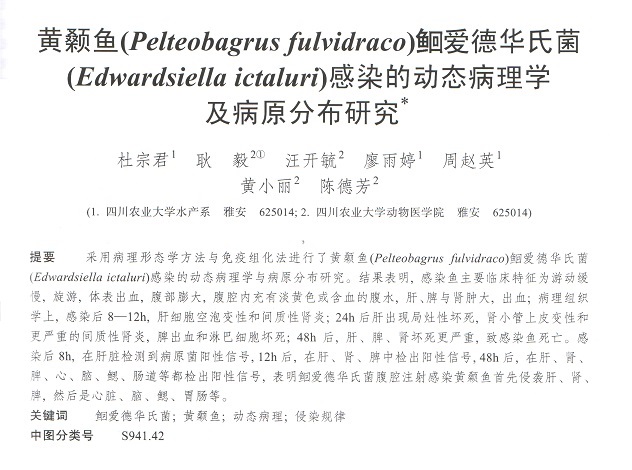 黃顙魚(Pelteobagrus fulvidraco)鮰愛德華氏菌(Edwardsiella ictaluri)感染的動態(tài)病理學及病原分布研究